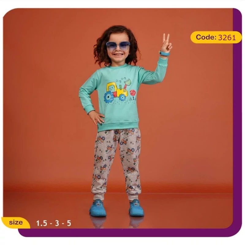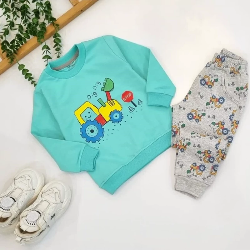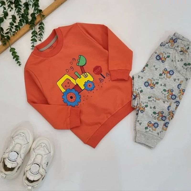 بلوز شلوار آستین بلند پسرانه طرح تراکتور