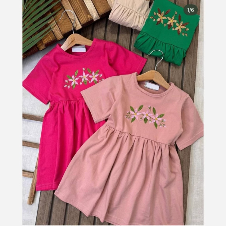 پیراهن دخترانه آستین کوتاه گلدوزی شده