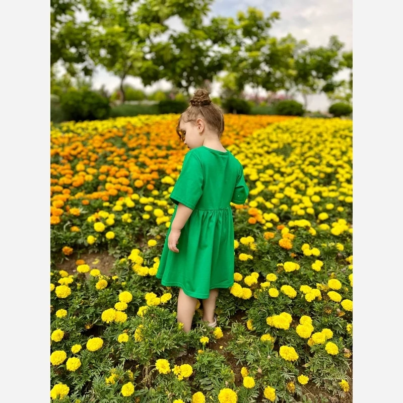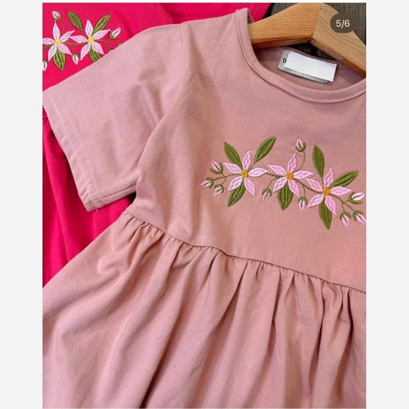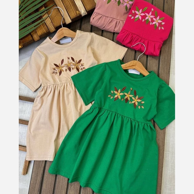 پیراهن دخترانه آستین کوتاه گلدوزی شده